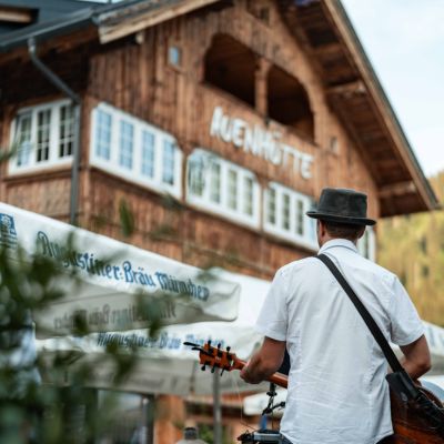 In der Laubela trifft Augustiner vom Fass auf Lillet Wildberry & Moscow Mule, dazu ausgewählte Weine aus Österreich und Spirituosen von Prinz bis around the world. Und fürs Bauchgefühl? Von Walser Käsknöpfle über unseren Auenhütte-Kaiserschmarrn bis zu veganen Ifen-Dumplings ist alles am Start, was Bergverliebte feiern.